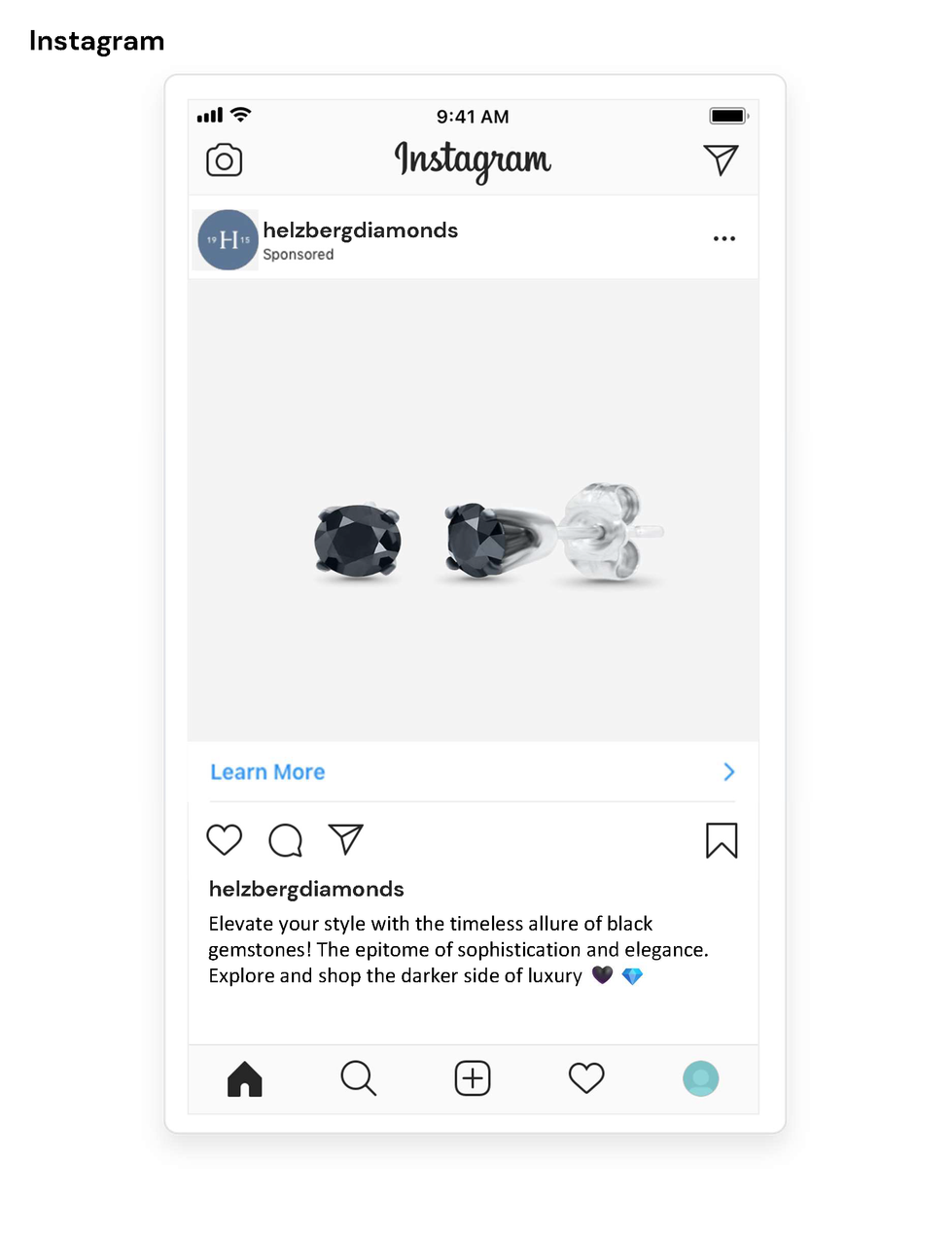 This project features a series of Instagram and Facebook ads showcasing various jewelry pieces, including rings, earrings, and necklaces with different gemstones and designs.